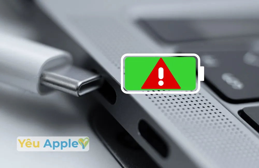 - Máy hoàn toàn không nhận sạc: Khi kết nối bộ sạc, đèn báo trên đầu dây (với sạc MagSafe) không sáng hoặc biểu tượng tia sét không xuất hiện trên thanh trạng thái (với sạc USB-C). Đây là biểu hiện rõ nhất của việc hỏng mạch quản lý nguồn, cần phải sửa main lỗi mất sạc Macbook tại Yêu Apple.