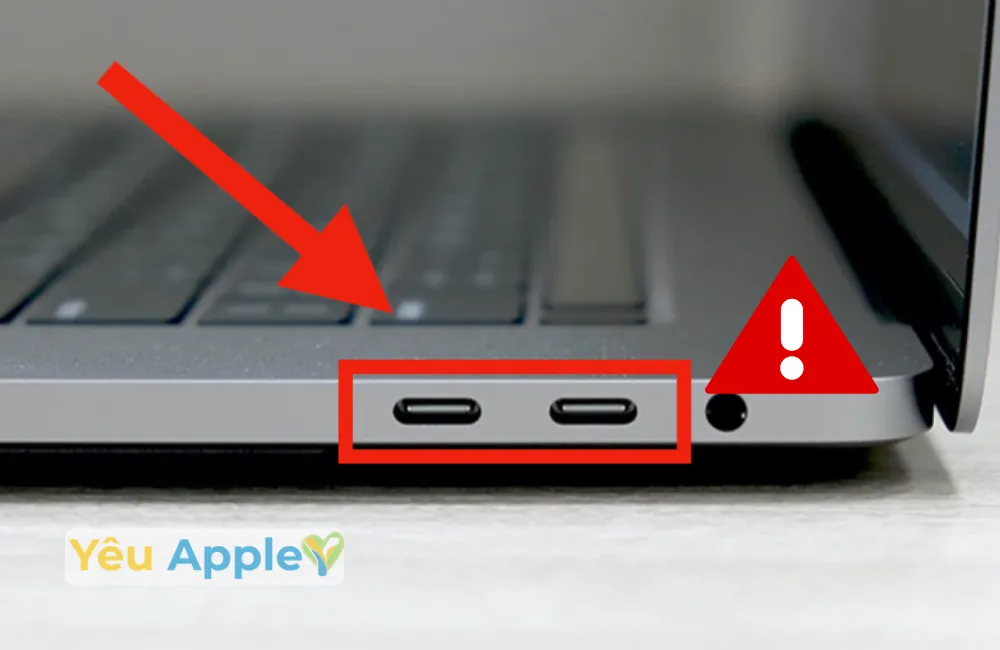 - Phát ra tiếng kêu lạ hoặc nóng bất thường tại vùng cổng sạc: Khi cắm sạc, nếu có tiếng "xì xì" nhỏ hoặc nhiệt độ tăng cao đột ngột tại khu vực kết nối, đó là dấu hiệu của việc chập mạch nguồn sạc. Bạn cần khẩn cấp sửa main lỗi mất sạc Macbook để tránh nguy cơ cháy nổ mainboard.