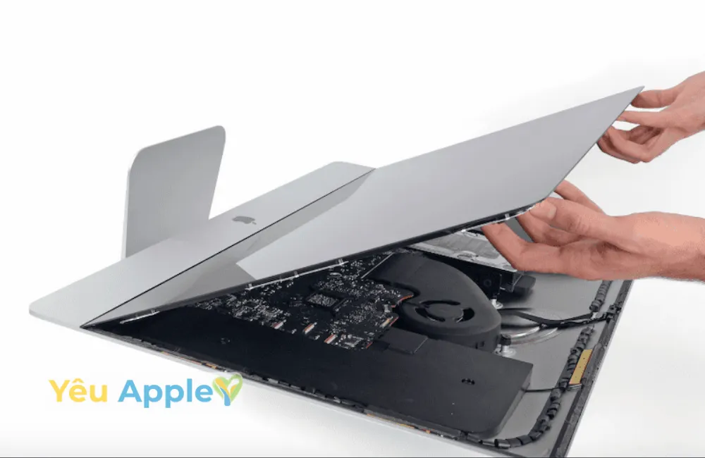 - Tháo lắp bằng dụng cụ chuyên dụng: Khác với các dòng laptop thông thường, việc tháo màn hình iMac đòi hỏi bộ dụng cụ cắt keo và hít kính chuyên nghiệp. Quá trình này được thực hiện tỉ mỉ tại Yêu Apple, đảm bảo khung nhôm của máy không bị trầy xước hay biến dạng trong suốt quá trình thay màn hình iMac.