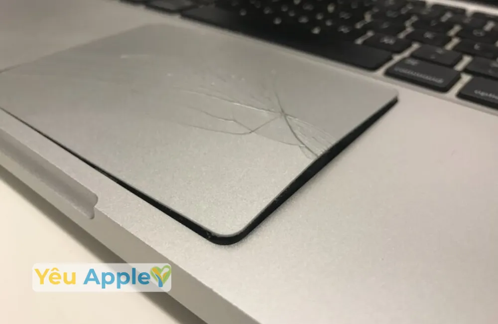 - Bề mặt kính bị nứt vỡ hoặc trầy xước nghiêm trọng: Không chỉ ảnh hưởng đến thẩm mỹ, các vết nứt có thể gây nguy hiểm cho tay người dùng và làm hỏng lớp cảm ứng bên dưới. Dịch vụ thay trackpad Macbook Pro M4 Max 14 inch 2024 tại Yêu Apple sẽ giúp khôi phục vẻ đẹp và tính năng nguyên bản.
